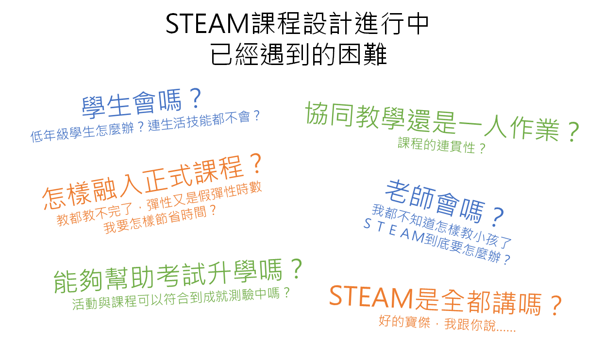 * STEAM融入正式課程可以節省教學時間,但需要更多時間的課程設計