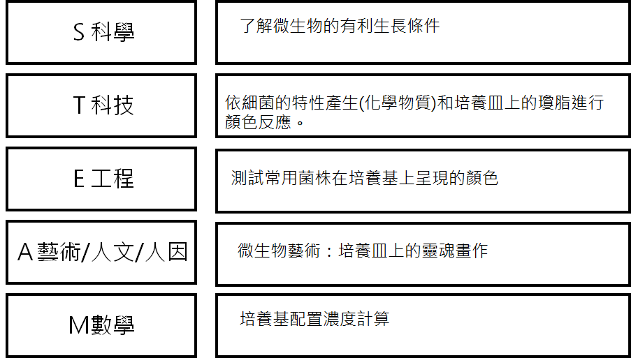 **課程概說**:利用不同微生物在培養基生長顯現出不同顏色,培養藝術創造力,引發科學興趣