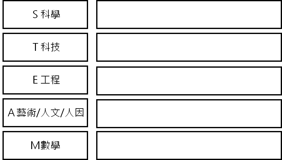 #大家設計課程用這個來填寫唷,STEAM不用全部用到,少一個也沒關係,但盡量多一點跨領域或者跨科的聯結
