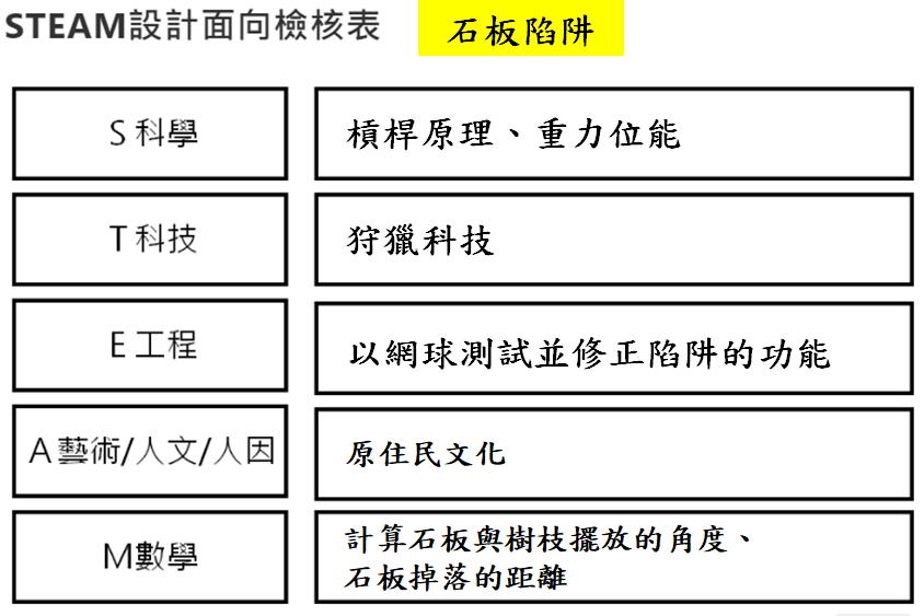 1. 課程概說:原住民的傳統文化有陷阱設計,幫助他們能獵食到動物,並將收穫帶回部落,培養分享品格。