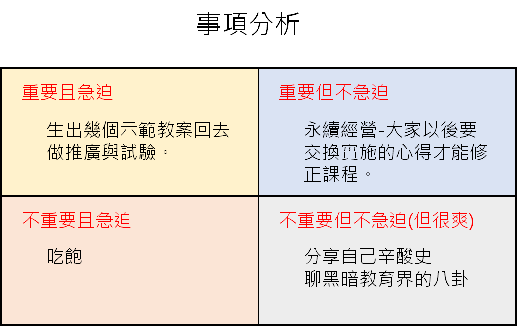 * 老師們對於T、E最不清楚,A的範圍定義不清楚M要怎樣使用則是以為自己懂但最模糊