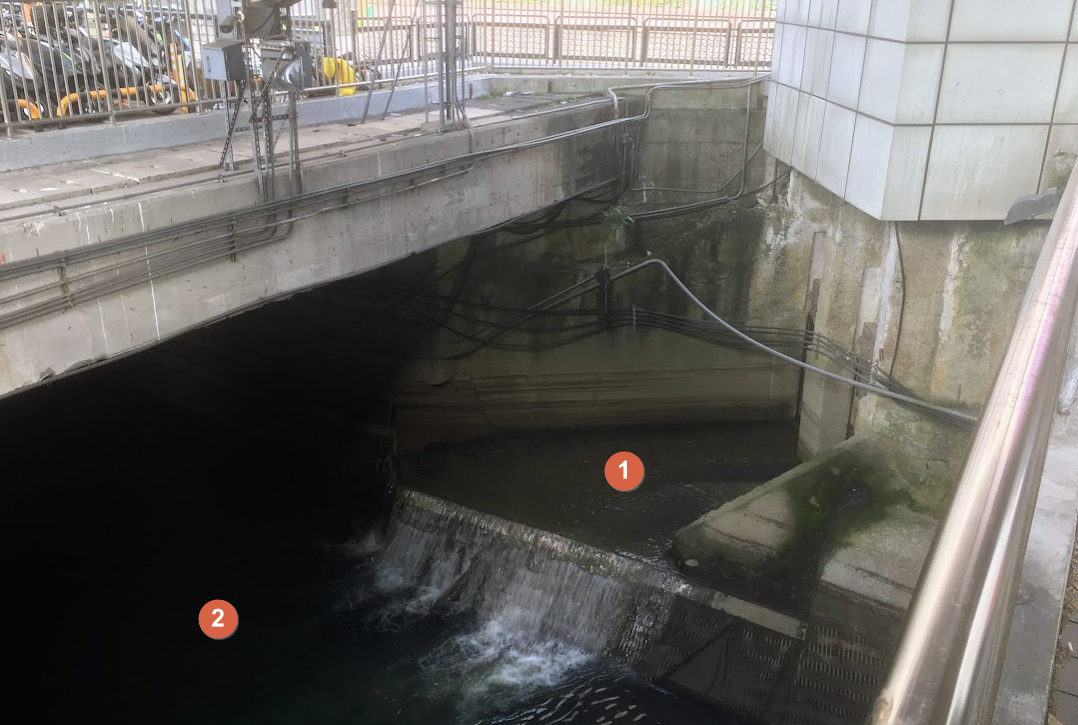 - 圖片中 2 位置,主幹線內的水質