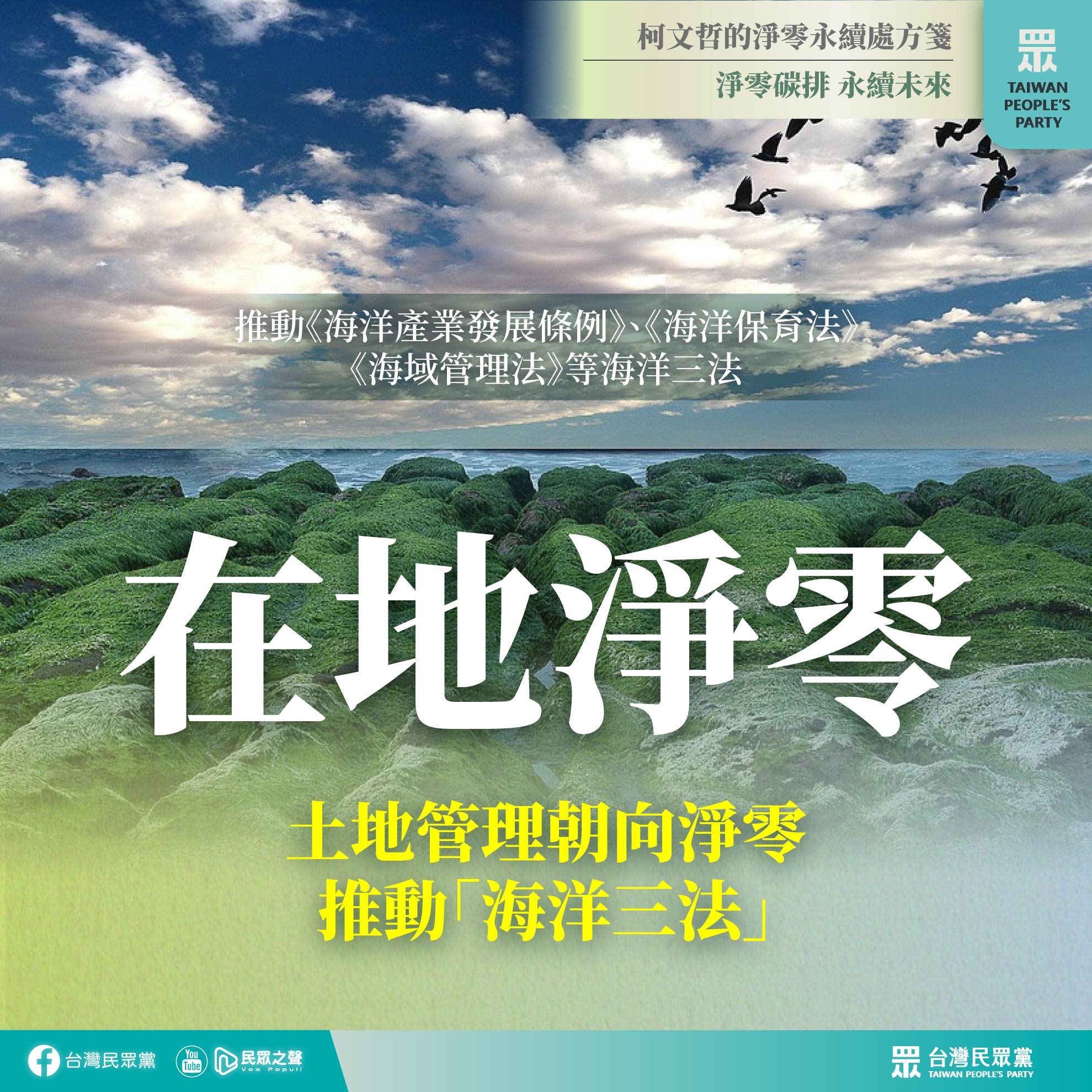 同時也要推動海洋三法《海洋產業發展條例》、《海洋保育法》、《海域管理法》,不僅保全海洋生物多樣性,更能發揮海洋碳匯功能。