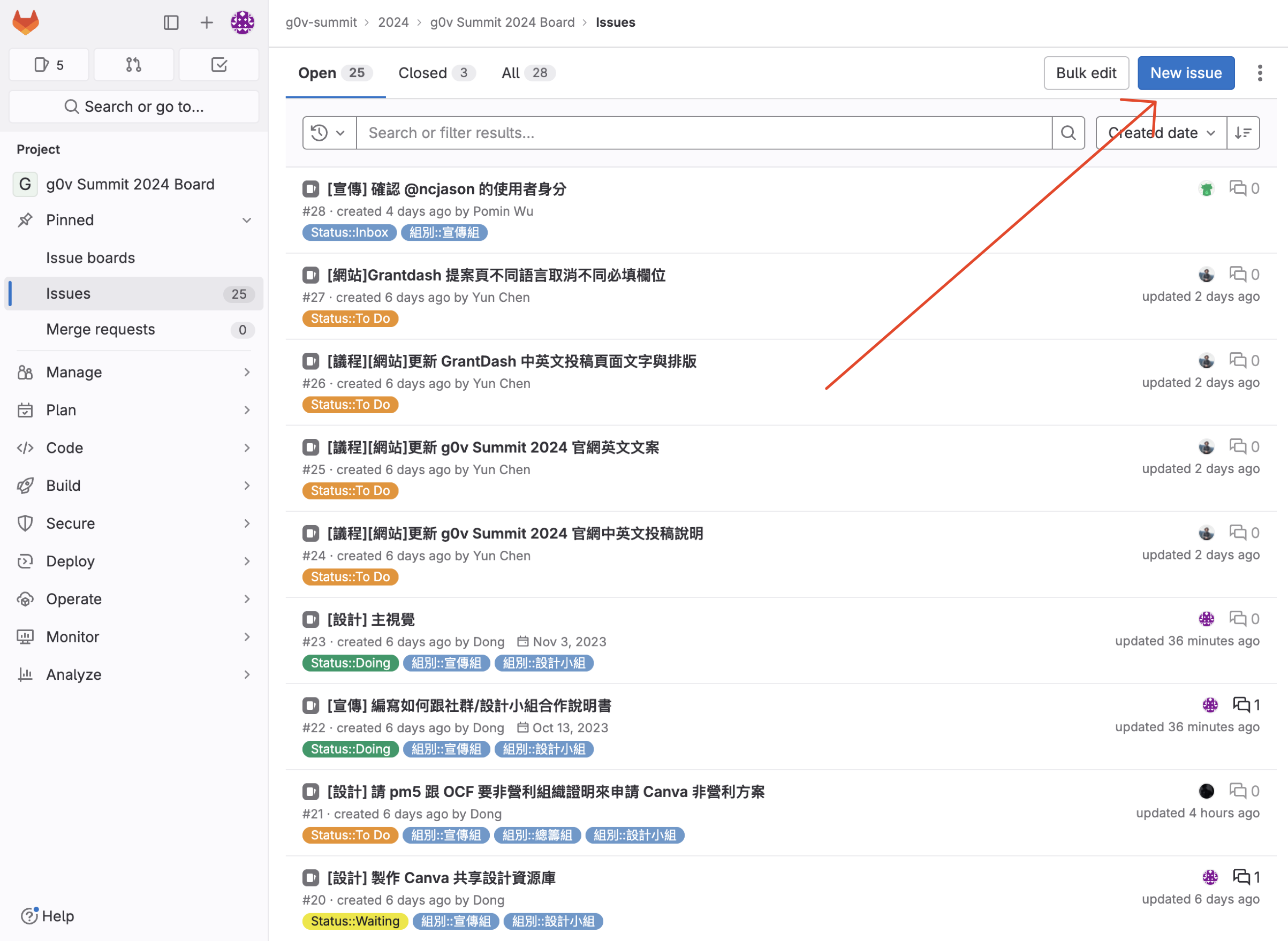 註釋:開源社群界用語,意指在原始碼協作平台(GitHub, Gitlab)上開一個 Issue。