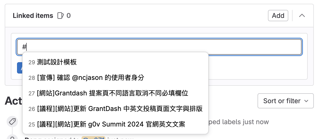 5. 若設計票有與其他票有關聯,請於「Linked items」中標註,方便追蹤