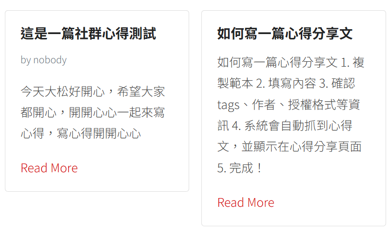為了徵集更多參與者的心得,我們也希望可以做出方便社群成員投稿的**心得分享頁**